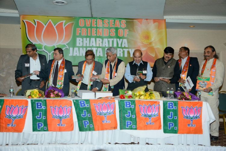 Overseas Friends of BJP's Nationcal Council Meeting was held in North Brunswick, NJ from September 14th to 16th. Attendees include Shri Ram Lal Gupta, National General Secretary (Org), BJP, Shri Vijay Jolly, Overseas Convener of the foreign affairs cell, BJP and Gajendra Solanki, Co-convenor, Cultural Cell, BJP. Photocredit: Shivakumar Chikine