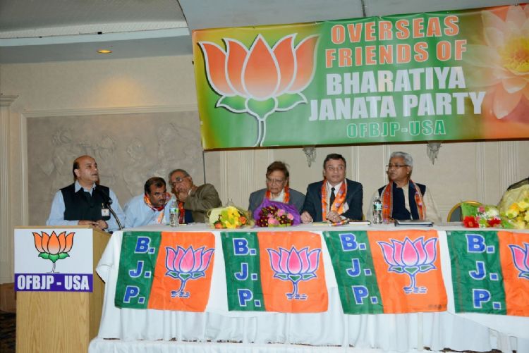 Overseas Friends of BJP's Nationcal Council Meeting was held in North Brunswick, NJ from September 14th to 16th. Attendees include Shri Ram Lal Gupta, National General Secretary (Org), BJP, Shri Vijay Jolly, Overseas Convener of the foreign affairs cell, BJP and Gajendra Solanki, Co-convenor, Cultural Cell, BJP. Photocredit: Shivakumar Chikine