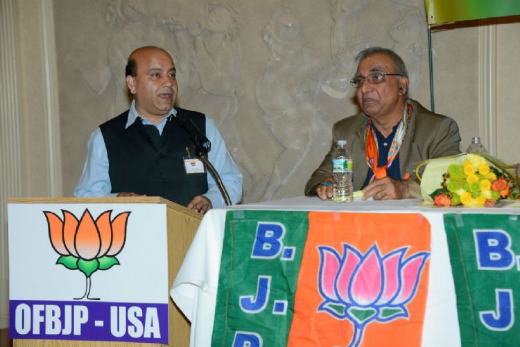 Overseas Friends of BJP's Nationcal Council Meeting was held in North Brunswick, NJ from September 14th to 16th. Attendees include Shri Ram Lal Gupta, National General Secretary (Org), BJP, Shri Vijay Jolly, Overseas Convener of the foreign affairs cell, BJP and Gajendra Solanki, Co-convenor, Cultural Cell, BJP. Photocredit: Shivakumar Chikine