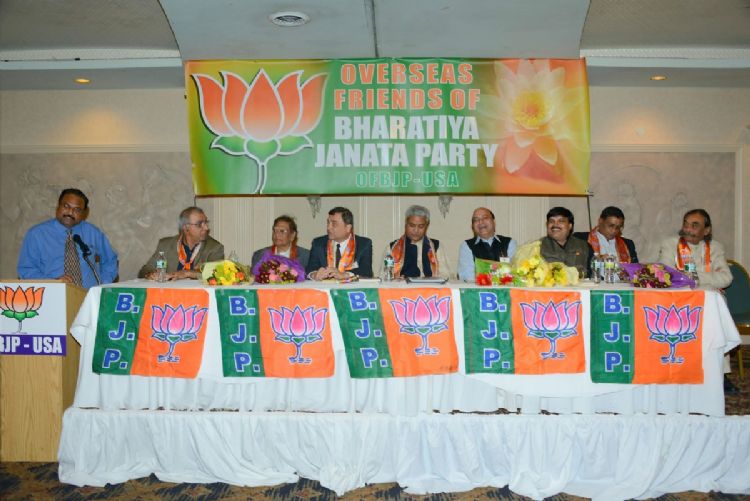 Overseas Friends of BJP's Nationcal Council Meeting was held in North Brunswick, NJ from September 14th to 16th. Attendees include Shri Ram Lal Gupta, National General Secretary (Org), BJP, Shri Vijay Jolly, Overseas Convener of the foreign affairs cell, BJP and Gajendra Solanki, Co-convenor, Cultural Cell, BJP. Photocredit: Shivakumar Chikine