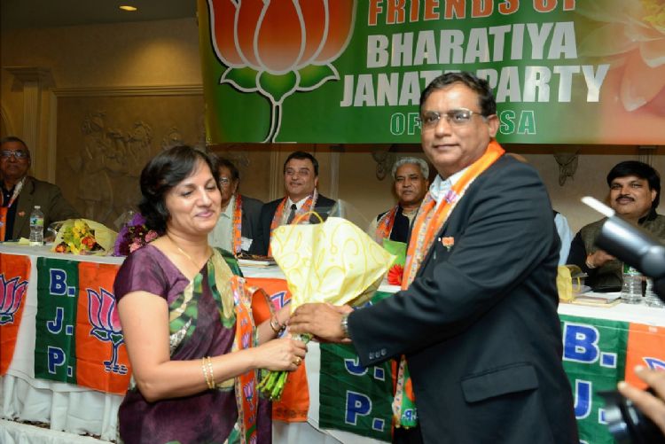 Overseas Friends of BJP's Nationcal Council Meeting was held in North Brunswick, NJ from September 14th to 16th. Attendees include Shri Ram Lal Gupta, National General Secretary (Org), BJP, Shri Vijay Jolly, Overseas Convener of the foreign affairs cell, BJP and Gajendra Solanki, Co-convenor, Cultural Cell, BJP. Photocredit: Shivakumar Chikine