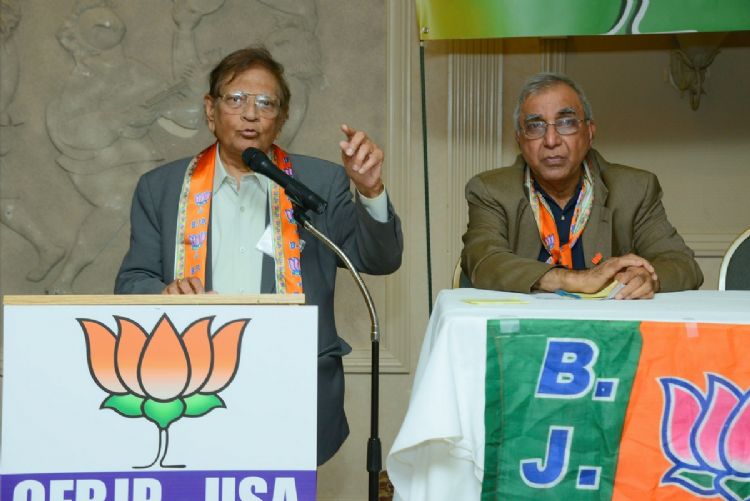 Overseas Friends of BJP's Nationcal Council Meeting was held in North Brunswick, NJ from September 14th to 16th. Attendees include Shri Ram Lal Gupta, National General Secretary (Org), BJP, Shri Vijay Jolly, Overseas Convener of the foreign affairs cell, BJP and Gajendra Solanki, Co-convenor, Cultural Cell, BJP. Photocredit: Shivakumar Chikine