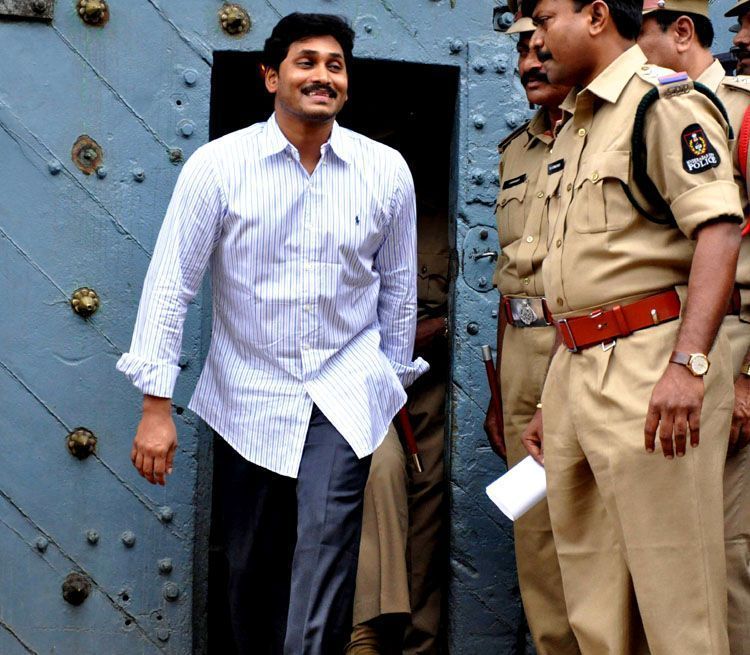 YSR Congress party president YS Jaganmohan Reddy, former Karnataka minister Gali Janardhan Reddy, ex-minister Mopidevi Venkataramana and other accused in high profile cases come out of Chanchalguda Central Jail here on Wednesday to appear before CBI Court - INN Photos