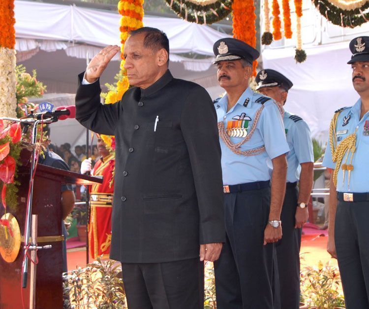 Governor ESL Narasimhan takes salute from the armed forces during the Republic Day celebrations at Parade Grounds here on Saturday - INN Photos