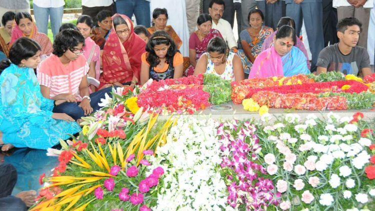 YSRCP hon. president Smt. YS Vija lakshmi and her family members offering tributes to Late Chief minister Dr Y S Rajsheker Reddy at his Samadhi in Idupulapaya of Kadapa district on Monday on the occasion of 64th birth anniversay of YSR.