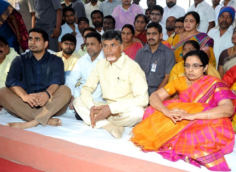 TDP president along with his family members paid rich tributes to NTR on his death anniversary at NTR Ghat on Saturday.