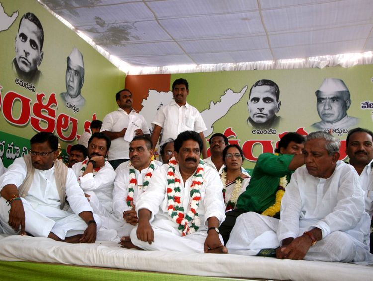 Seemandhra Congress MPs staging Sankalp Deeksha at Indira Park here in protest against bifurcation of Andhra Pradesh