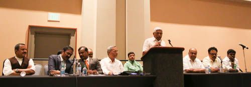 Discussion on Role of NRIs in the Development of New States and Investment Opportunities for NRIs. Prof. Kodanda Ram, Senior Journalists K. Rama Chandra Murthy and K. Srinivas, First NRI MP in India Madhu Yaskhi, Senior Leader Nagam Janardana Reddy explained the ground realities and opportunities.