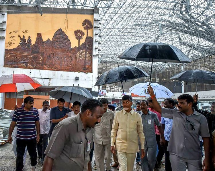 Chief Minister Chandrababu Naidu who reached Visakhapatnam by road took an aerial survey; spoke to ministers and officials of the district to assess the loss and damage caused by cyclone HudHud on Monday.