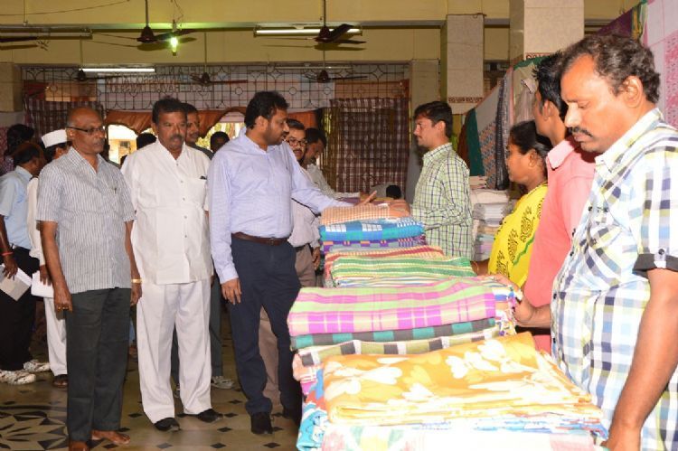 The Prakasam District Collector G.S.R.K.R Vijay Kumar inaugurating APCO Handlooms Exhibition in Ongole on Friday.