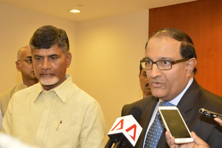 AP CM N. Chandrababu Naidu with Singapore Minister for Trade and Industry S. Iswaran in Singapore on Monday.