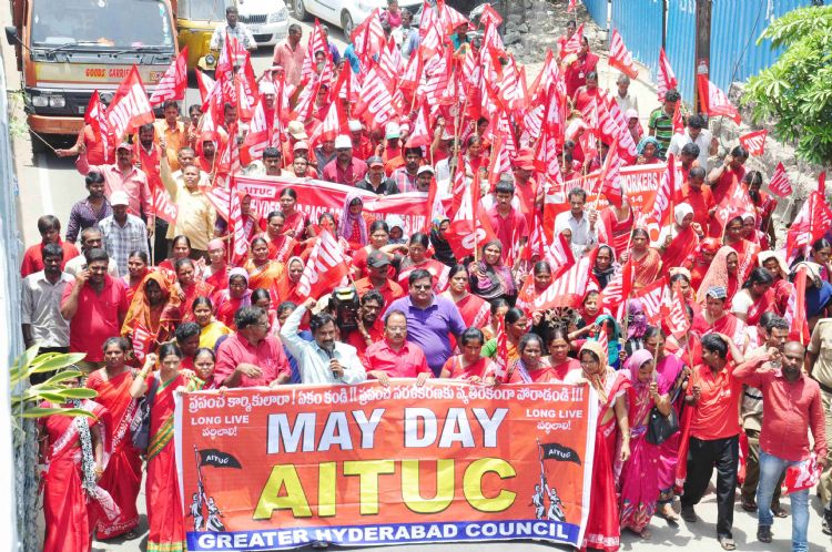 AITUC organised a Rally from Himayatnagar on the eve of May Day Celebrations on 1st May 2015.