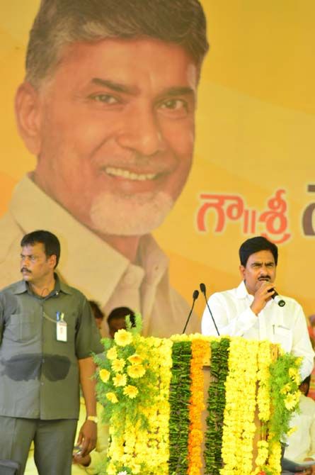 Chief Minister Andhra Pradesh N. Chandrababu Naidu public meeting at Polavaram village in Prakasam District on April 25, 2015.