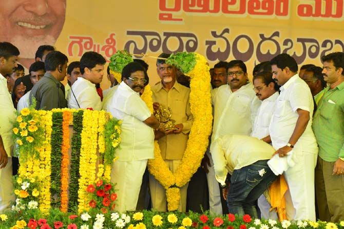 Chief Minister Andhra Pradesh N. Chandrababu Naidu public meeting at Polavaram village in Prakasam District on April 25, 2015.