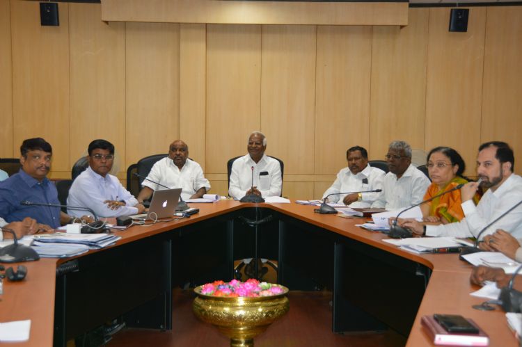 Kadiyam Srihari, Dy.CM(Education), Sri Jogu Ramanna, Minister for Forests & Environment and A.Chandulal, Minister for ST Development are seen holding a review meeting on Welfare at Secretariat on May 8, 2015.