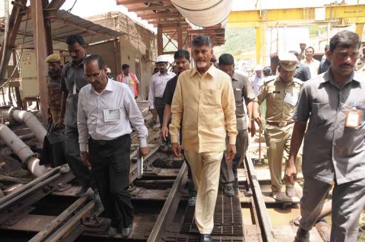 Chief Minister N.Chandrababu Naidu inspected 1st tunnel works of Velugonda Project in Dornala Mandal of Prakasam District on May 14, 2015.