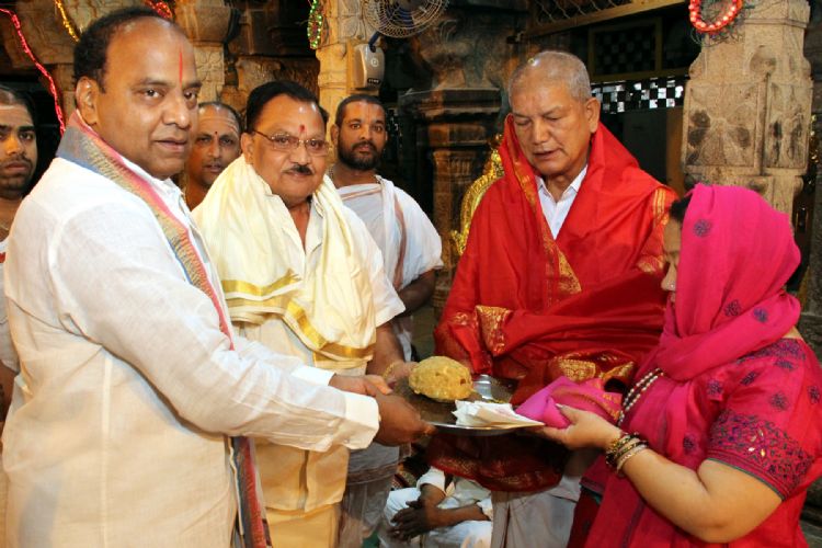 Chief Minister of Uttarakhand Sri Harish Rawat accompanied by family members offered prayers in the temple of Lord Venkateswara at Tirumala on Thursday morning.