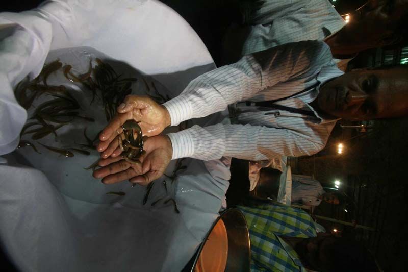 The miracle fish medicine, which cures asthma and respiratory illnesses and administered free of cost by the famous Bathini brothers of Dhoodhbowli, will be distributed at the "Exhibition grounds" in Nampally, Hyderabad. According to latest new from BATHINI BROTHERS This Year the Bathini Mrugasira Fish administering date (Mrigasira Karthi) falls on 8th June 2015 at 11:45pm(Night) It shall be administered 24 hrs non-stop i.e. up to 9th June 2015 11:45pm.