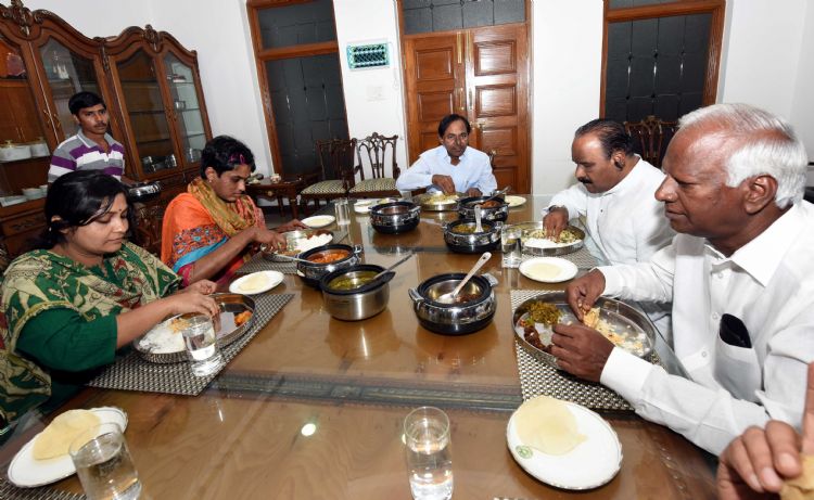 19yr old Battered, Bruised Teenager Prathyusha seen with CM, having lunch at Camp Office on 29th July 2015.