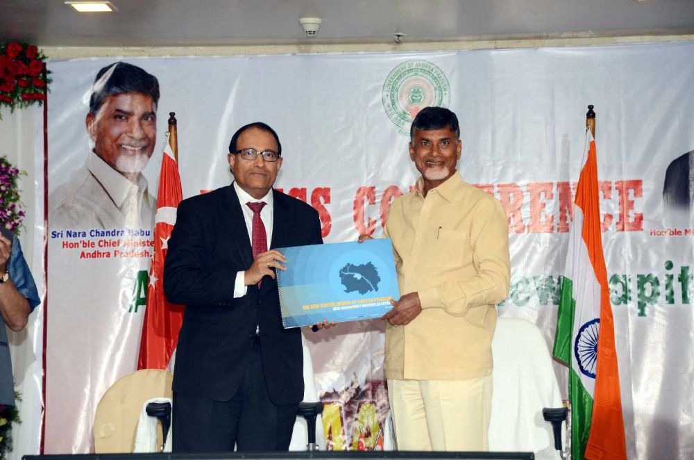 Singapore Second Minister for Trade and Industry S. Iswaran and his team visited Rajahmundry and handling over the Amaravathi Master Plan to CM Chandrabau Naidu on Monday.