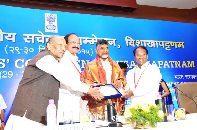 Andhra Pradesh CM N. Chandrababu Naidu felicitated in India Whips Conference held at Hotel Novatel, Vishakapatnam on 29th September 2015.
