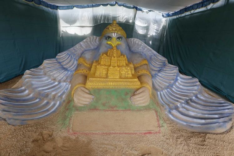 The Tirumala shrine is set for the annual mega religious event of Srivari Brahmotsavams and adding more grandeur to the nine-day event is the "Garudasthapitha Vimana Venkateswara" in sand art which is going to be a cynosure to the eyes of millions of devotees.
