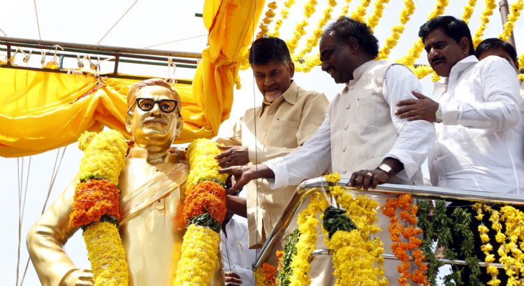 Andhra Pradesh Chief Minister N. Chandrababu Naidu unveiled the statue of Gurram Jashuva on the occasion of 120th Birth Anniversary at Tummalapalli Kalakshetram at Vijayawada on 28th September 2015.