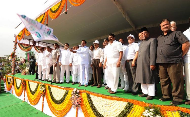 Telangana Chief Minister K. Chandrashekar Rao on Monday flagged off modern auto trolleys, procured by GHMC to lift the garbage across the city, at People's Plaza, Necklace Road, Hyderabad.