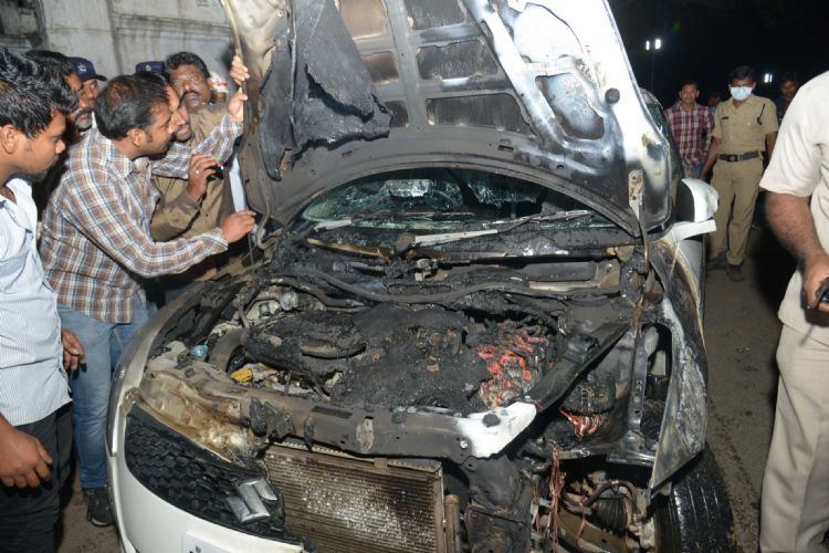 Polavaram TDP MLA Mudiyam Srinivas had a miraculous escape on Friday. Srinivas Rao's car caught fire on Friday evening at Andhra Pradesh Assembly premises. The MLA along with his gunmen and personal staff boarded the car after the Assembly session ended on 18th December 2015.