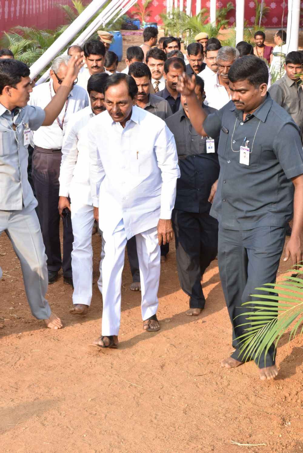 Telangana Chief Minister K. Chandrashekar Rao, along with family members, on Monday performed inaugural pooja in connection with 'Chandi Yagnam' being conducted at his farm house in Yerravelli of Medak district.