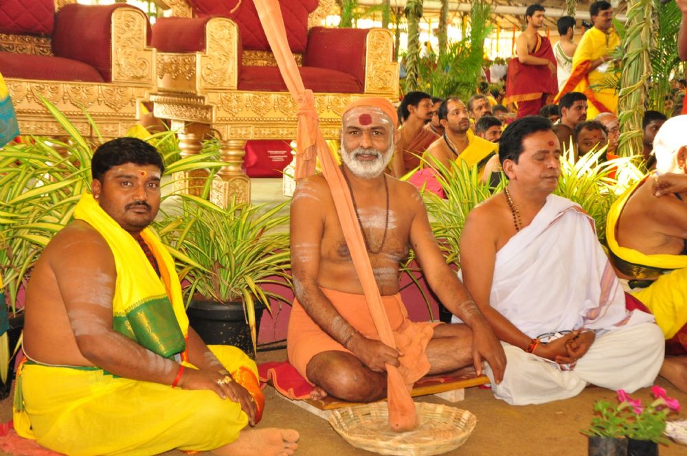 Telangana Chief Minister K. Chandrasekhar Rao and Governor ESL Narasimhan along with family members participated in Ayutha Chandi Maha Yagnam Day 1 pooja at farm house in Yerravelli of Medak district on 23rd December 2015.