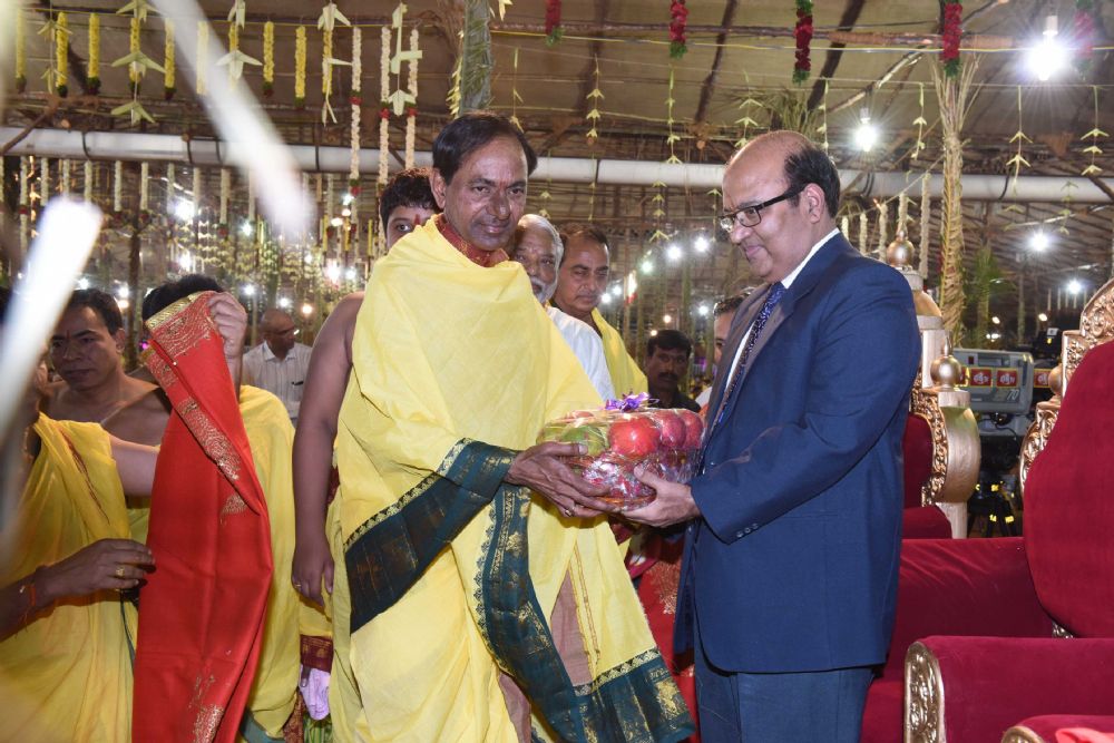 Chief Minister K. Chandrasekhar Rao and Union Ministers M. Venkaiah Naidu, Bandaru Datthathreya and others participated in Ayutha Chandi Yagam on Second Day at Yerravalli in Medak District.