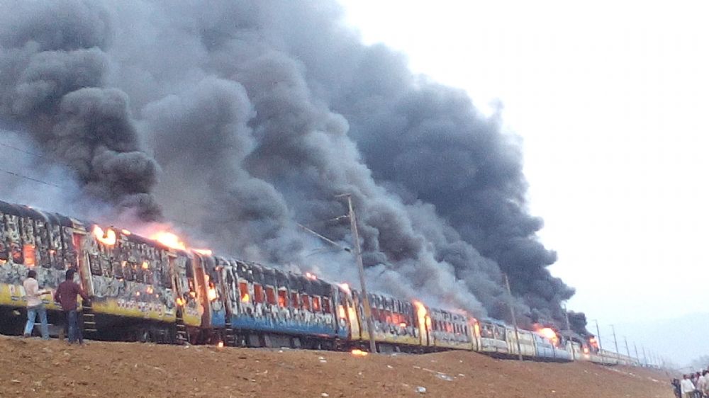 The Kapu Ikya Garjana held in Tuni in East Godavari district on Sunday, demanding inclusion of Kapu community in BC list, turned violent with protesters setting ablaze coaches of Ratnachal Express, a police station and other properties.