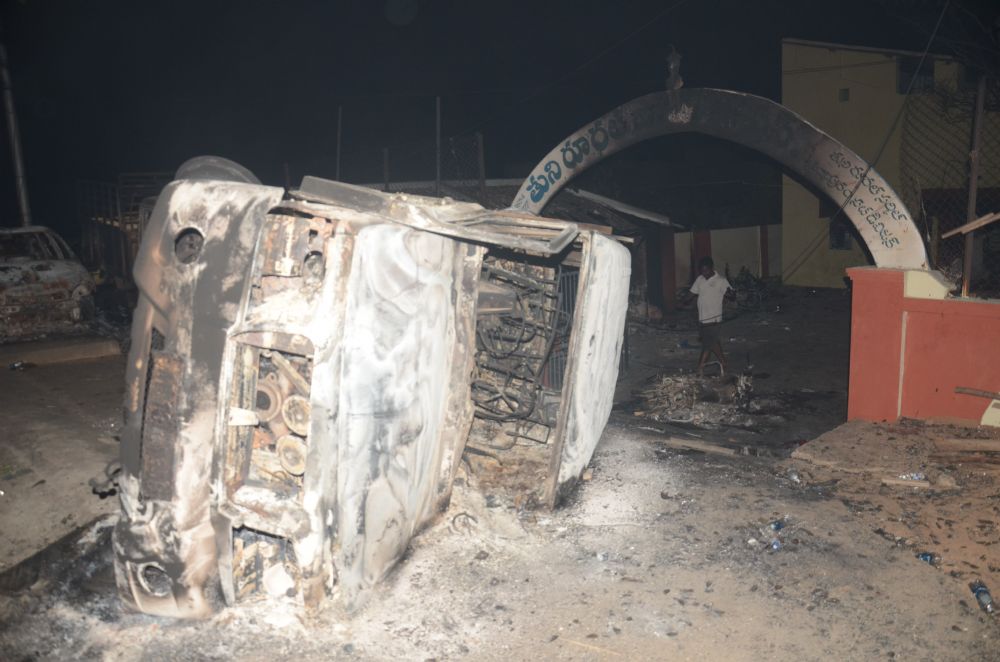 The Kapu Ikya Garjana held in Tuni in East Godavari district on Sunday, demanding inclusion of Kapu community in BC list, turned violent with protesters setting ablaze coaches of Ratnachal Express, a police station and other properties.