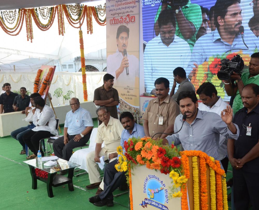 YSRCP Chief YS Jagan Mohan Reddy addressed thousands of youth in the "Yuva Bheri" programme held at Town hall in Srikakulam on Tuesday.