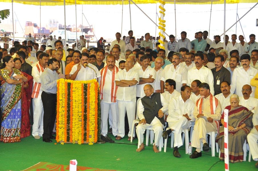Andhra Pradesh Chief Minister N.Chandra Babu Naidu laying foundation stone for Temporary Secretariat Building at Velagapudi on 17th February 2016.