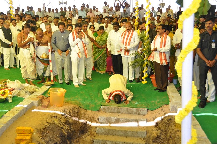 Andhra Pradesh Chief Minister N.Chandra Babu Naidu laying foundation stone for Temporary Secretariat Building at Velagapudi on 17th February 2016.