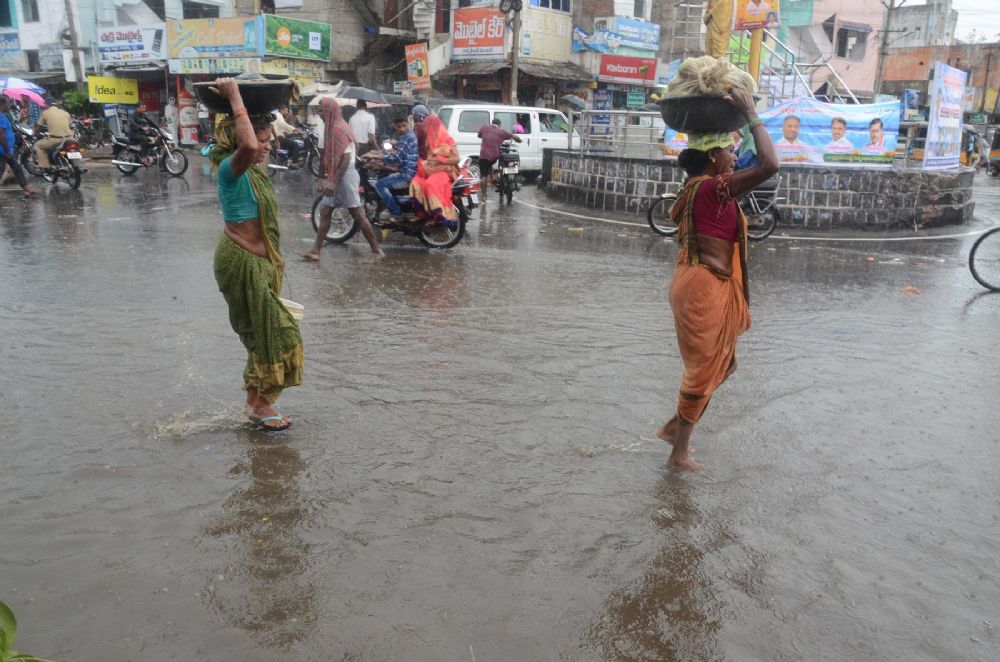 Srikakulam district is witnessing heavy rains and a curfew-like situation prevails everywhere, including on national highway where traffic is very thin on 18th May 2016.