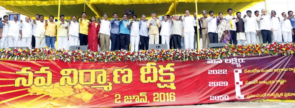 Andhra Pradesh Chief Minister N. Chandrababu Naidu, Speaker Kodela Siva Prasad, TDP Leaders along with Public took an oath at the Nava Nirmana Deeksha in Vijayawada, Striving for the Development of AP State on 2nd June 2016.