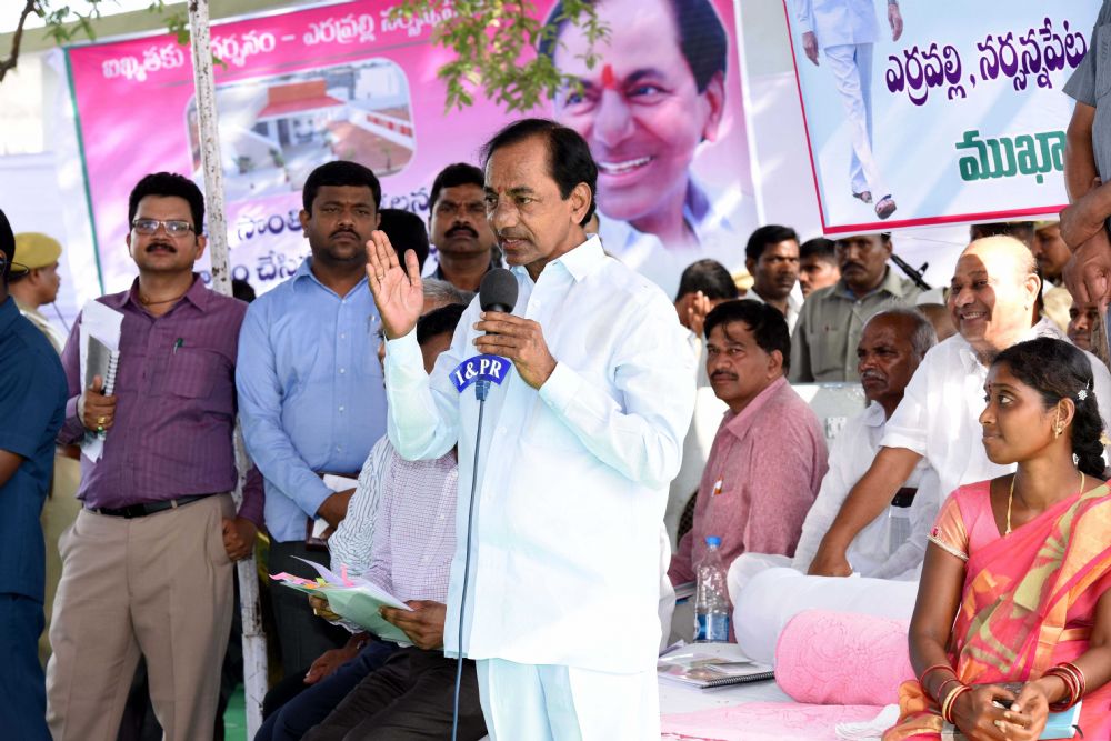 Chief Minister K. Chandrashekhar Rao distributing Tractors and participated in public meeting at Erravalli and Narsannapet villages of Jagdevpur mandal of Medak district on 10th June 2016.
