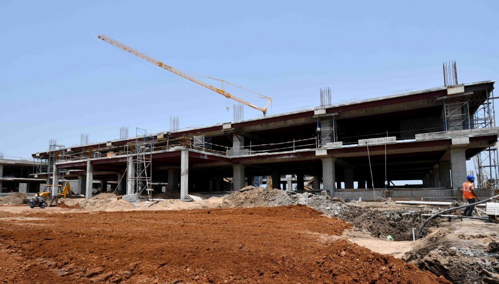 Andhra Pradesh Chief Minister N. Chandrababu Naidu inspecting the on going Secretariat building works in Velagapudi on 15th June 2016.