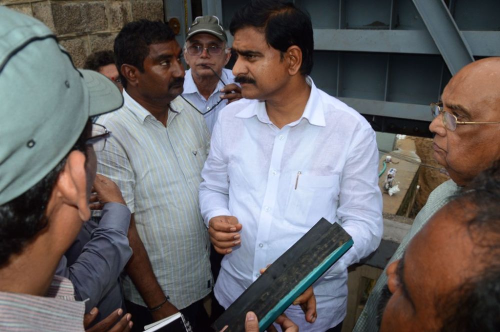 Andhra Pradesh Irrigation Minister Devineni Uma Maheswara Rao inspecting Pushkar Ghats, Durga Temple and Prakasam Barrage works in Vijayawada on 29th June 2016.
