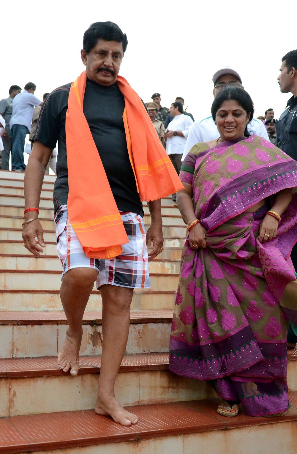 Deputy Chief Minister of Andhra Pradesh Nimmakayala Chinarajappa, MP Murali Mohan inagurated Anthya Pushkaralu at Rajahmahendravaram and taking a holy dip on River Godavari on 31th July 2016.