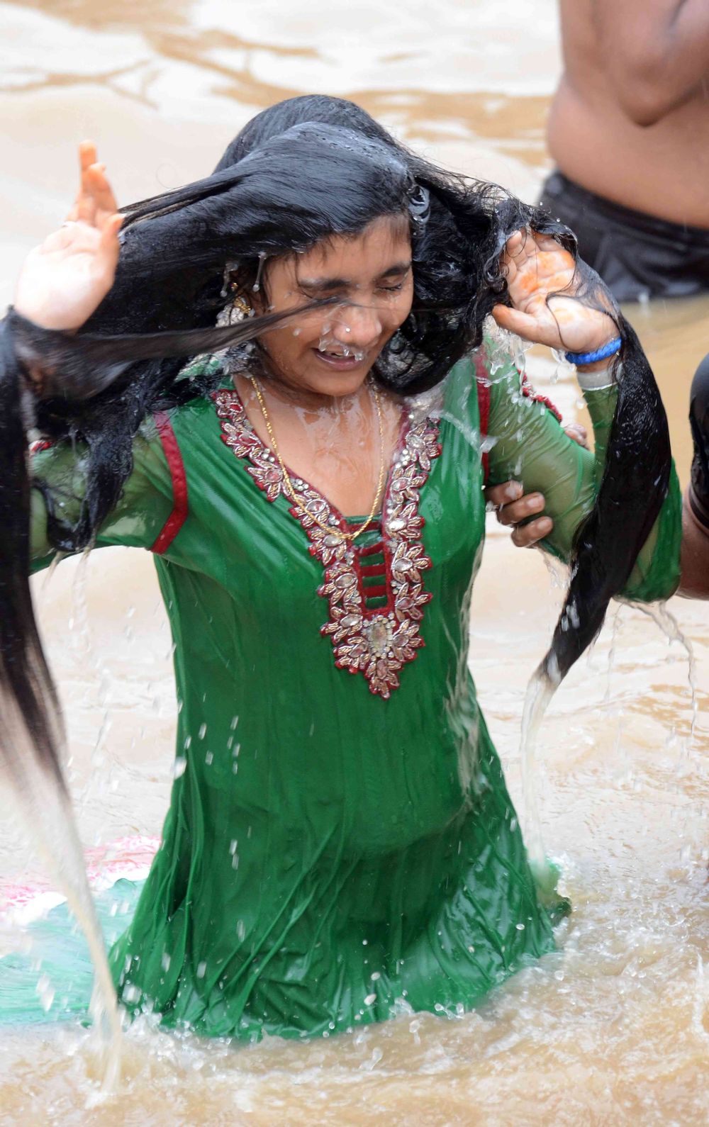 Piligrims are taking a holy dip on Day 4 of Anthya Pushkaralu of River Godavari at Rajamahendravaram on 3rd August 2016.