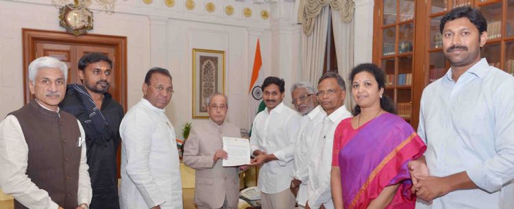 YSRCP Chief YS Jagan Mohan Reddy submitting a representation on the need for special status to the president Pranab Mukherjee at New Delhi on Tuesday.