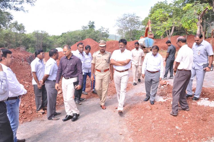 Andhra Pradesh DGP Nanduri Sambasiva Rao inspecting the construction works of DGP Office at Mangalagiri on 18th September 2016.