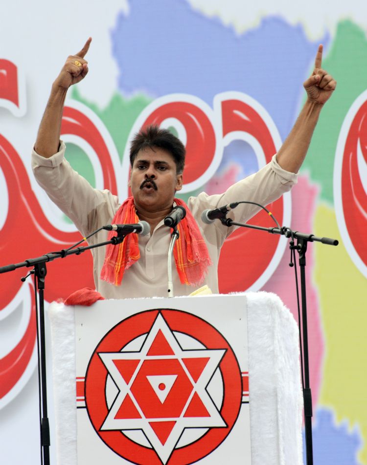 President of the Janasena Party and Cine Actor Pawan Kalyan addressing the public over the burning issue of Special Category Status to Andhra Pradesh State in meeting organised in Kakinada on 9th September 2016.