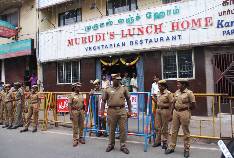 The Cauvery river water sharing dispute turned violent on Monday in Tamil Nadu and a group of protests in Rameshwaram smashed windscreens and window of buses and cars bearing Karnataka number plates.