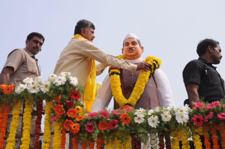 Andhra Pradesh Chief Minister N. Chandrababu Naidu unveiling the Statue of Lal Bahadur Sastry in Rajamahendravaram on 19th November 2016.