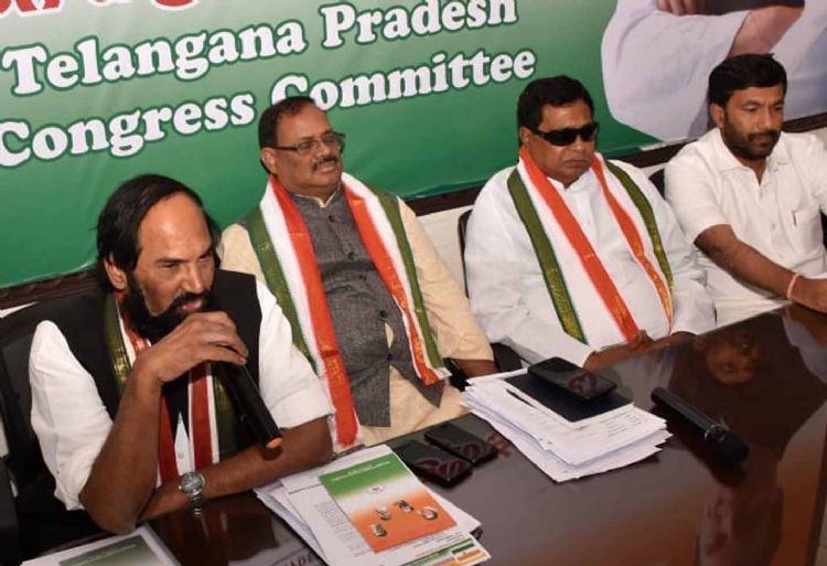 TPCC Uttam Kumar Reddy addresses a review meeting of Parliamentary constituencies of Nalgonda, Bhongir and Khammam. at Gandhi Bhavan on Saturday - INN Photos